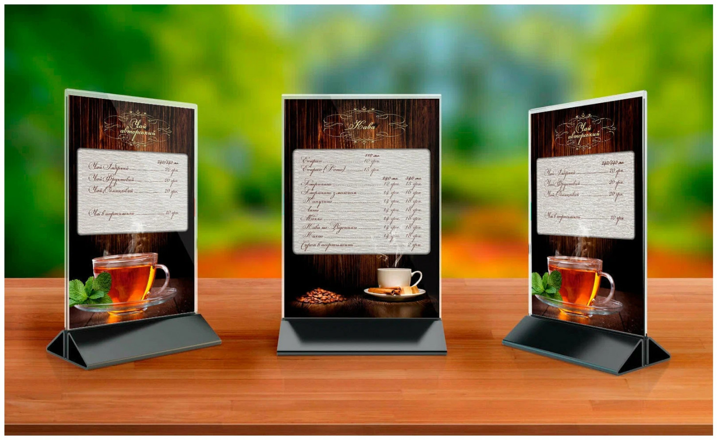 Тейблтенты — это настольные рекламные конструкции, предназначенные для привлечения внимания клиентов в ресторанах, кафе, гостиницах, офисах и на выставках. Они используются для размещения информации о меню, акциях, специальных предложениях или услугах компании.